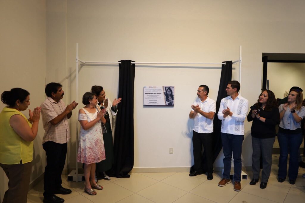 En honor a su invaluable legado, se develó una placa que llevará el nombre de María del Pilar Silva Valadez en la Sala de Usos Múltiples del CEART Tecate, reconociendo su destacada contribución al arte y la cultura del municipio.